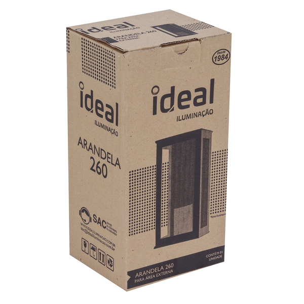 Arandela de Parede Externa IP44 260 Ideal Iluminação Preta Bivolt